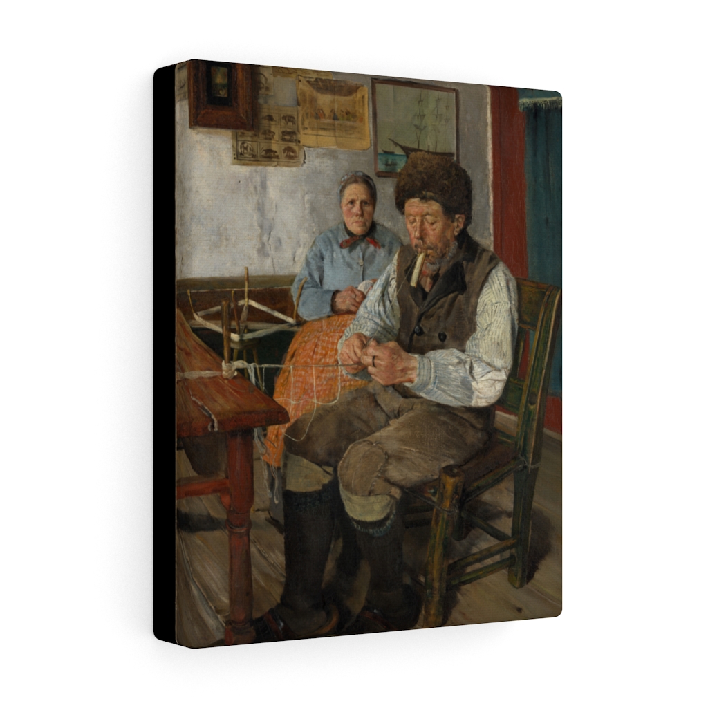 The Net Mender (Garnbinderen) 1879 Christian Krohg. Historical wall art paintings by the masters that are in public domain. Beautiful canvas wall art print for your home or office. #styleathome #homedecor #paintingsforhome #classicalart #gift #holidaygift #artlovergift #wallartprint #canvaswallart #canvaswallprints Designed for indoor use, custom stretched canvas prints are made from treated cotton - providing the smoothest of matte surfaces for exceptional design vividity. A combination of quality and durability, these hangings come with a lifelong color guarantee; there's significant confidence in their withstanding the test of time. On the backside, pre-installed hanging hardware ensures proper locking to walls. .: 100% cotton fabric .: Wooden frame .: High image quality and detail .: For indoor use